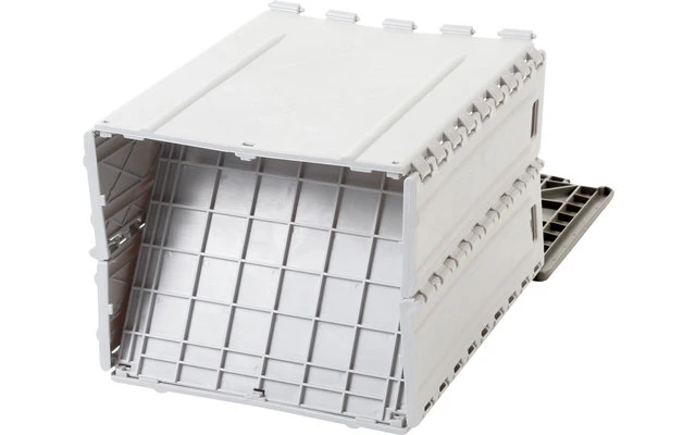 Klappbarer Abfalleimer aus Kunststoff. Im zusammengeklappten Zustand extrem platzsparend. Aufgeklappt hat der Abfalleimer ein Fassungsvermögen von 30 Litern.