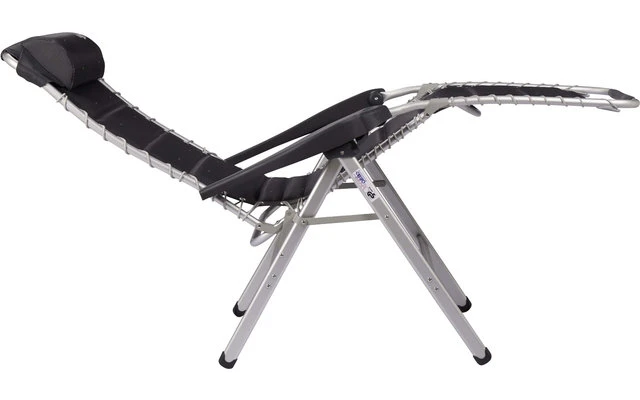 Entspannende Relaxliege von außergewöhnlicher Qualität mit Kissen inklusive. Die Liege bietet absoluten Komfort, der Stoff wird durch eine elastische Schnur an der Struktur befestigt. Die Rückenlehne und die Armlehnen sind ergonomisch. Die Relaxliege kann in unendlichen Positionen eingestellt werden. Die H-eloxierte Struktur sorgt für mehr Stabilität und Festigkeit.Â